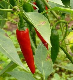 | C. frutescens | Ají caballero · Bangalore torpedo · Bird's eye chilli · Cabai burong · Kurnool · Malagueta · Megh · Piri piri · Tabasco · Thai bangkok upright · Zimbabwe bird |