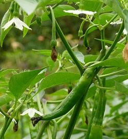 | C. annuum | Aleppo · Ammazzo · Anaheim · Antohi romanian · Apache · Ancho gigantea · Arizona chiltepin · Azr · Baby belle · Banana · Banana sweet · Bassotto · Beaver dam · Bell · Berbere · Bhavnagari long · Big bomb · Blushing beauty · Bolivian rainbow · Born fire · Bulgarian carrot · Buran · California wonder · Candlelight · Carmen · Cayenne · Cayenne long purple · Charleston hot · Chervena chushka · Cherry bomb · Cheyenne · Chilly chili · Chiltepin · Chimayo · Chinese five colour · Chocolate beauty · Chocolate bell · Ciliegia picante · Cobra · Cow horn · Crest · Cubanelle · Cyklon · Czechoslovakian black · Dagger pod · De árbol · Demon red · Devil · Doe hill golden · Don emilio · Dutch hot · Early jalapeño · Elephant trunk · Etna · Explosive ember · Fajita bell · Fire cracker · Fish · Fooled you · Gamba · Garden salsa · Garden sunshine · Giallo d'asti · Giallo di cuneo · Giant szegedi · Giant thai · Goat's weed · Golden heat · Golden horn · Golden nugget · Grande jalapeño · Guajillo · Gypsy · Hershey · Hidalgo · Hot portugal · Hot summer · Hungarian black · Hungarian hot wax · Hercules · Italian hot · Jalapeño · Jimmy Nardello · Joe Parker · Joe's long · King of the north · Krakatoa · Krimzon lee · Kung pao · Lamuyo · Lombardo · Marconi red · Mariachi · Melrose · Mirasol · Moragot · Navaho · NuMex big jim · NuMex twilight · Orange cayenne · Pasilla · Pasilla bajio · Pelita · Peppino · Pepperoncini · Pequin · Peruvian purple · Piccante de cayenne · Piccante rosso di caienna · Pico de gallo · Pimento · Pimento elite · Pimiento de padrón · Pinocchio's nose · Poblano · Pritavit · Purple beauty · Pusa jwala · Raja's pride · Red peter · Red ruffled pimiento · Riot · Rota basco · Roumanian rainbow · San ardo · Santa fe grande · Señorita · Serrano · Sheepnose pimiento · Shishito · Sigaretto di bergamo · Sizzler · Stavros Greek pepperoncini · Sunrise orange · Super cayenne · Super red pimento · Sweet cherry · Tequila · Thai dragon · Thai yellow · Thor · Turkish cayenne · Volcano · Watermelon · Wenk's yellow · Wisconsin lakes · Yellow belle · Yellow cayenne |