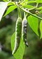 Dagger pod is a Cayenne-type from India.[2] Fruits are approx 10-13cm (4-5in) long by 1-2cm (½-¾in) and mature from green through to orange and then to red.[1]
