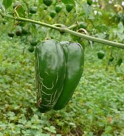 | C. annuum | Aleppo · Ammazzo · Anaheim · Antohi romanian · Apache · Ancho gigantea · Arizona chiltepin · Azr · Baby belle · Banana · Banana sweet · Bassotto · Beaver dam · Bell · Berbere · Bhavnagari long · Big bomb · Blushing beauty · Bolivian rainbow · Born fire · Bulgarian carrot · Buran · California wonder · Candlelight · Carmen · Cayenne · Cayenne long purple · Charleston hot · Chervena chushka · Cherry bomb · Cheyenne · Chilly chili · Chiltepin · Chimayo · Chinese five colour · Chocolate beauty · Chocolate bell · Ciliegia picante · Cobra · Cow horn · Crest · Cubanelle · Cyklon · Czechoslovakian black · Dagger pod · De árbol · Demon red · Devil · Doe hill golden · Don emilio · Dutch hot · Early jalapeño · Elephant trunk · Etna · Explosive ember · Fajita bell · Fire cracker · Fish · Fooled you · Gamba · Garden salsa · Garden sunshine · Giallo d'asti · Giallo di cuneo · Giant szegedi · Giant thai · Goat's weed · Golden heat · Golden horn · Golden nugget · Grande jalapeño · Guajillo · Gypsy · Hershey · Hidalgo · Hot portugal · Hot summer · Hungarian black · Hungarian hot wax · Hercules · Italian hot · Jalapeño · Jimmy Nardello · Joe Parker · Joe's long · King of the north · Krakatoa · Krimzon lee · Kung pao · Lamuyo · Lombardo · Marconi red · Mariachi · Melrose · Mirasol · Moragot · Navaho · NuMex big jim · NuMex twilight · Orange cayenne · Pasilla · Pasilla bajio · Pelita · Peppino · Pepperoncini · Pequin · Peruvian purple · Piccante de cayenne · Piccante rosso di caienna · Pico de gallo · Pimento · Pimento elite · Pimiento de padrón · Pinocchio's nose · Poblano · Pritavit · Purple beauty · Pusa jwala · Raja's pride · Red peter · Red ruffled pimiento · Riot · Rota basco · Roumanian rainbow · San ardo · Santa fe grande · Señorita · Serrano · Sheepnose pimiento · Shishito · Sigaretto di bergamo · Sizzler · Stavros Greek pepperoncini · Sunrise orange · Super cayenne · Super red pimento · Sweet cherry · Tequila · Thai dragon · Thai yellow · Thor · Turkish cayenne · Volcano · Watermelon · Wenk's yellow · Wisconsin lakes · Yellow belle · Yellow cayenne |