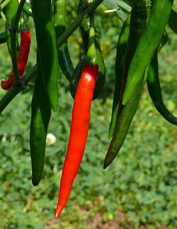 | C. frutescens | Ají caballero · Bangalore torpedo · Bird's eye chilli · Cabai burong · Kurnool · Malagueta · Megh · Piri piri · Tabasco · Thai bangkok upright · Zimbabwe bird |