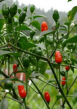 | C. frutescens | Ají caballero · Bangalore torpedo · Bird's eye chilli · Cabai burong · Kurnool · Malagueta · Megh · Piri piri · Tabasco · Thai bangkok upright · Zimbabwe bird |