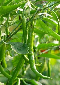 | C. frutescens | Ají caballero · Bangalore torpedo · Bird's eye chilli · Cabai burong · Kurnool · Malagueta · Megh · Piri piri · Tabasco · Thai bangkok upright · Zimbabwe bird |