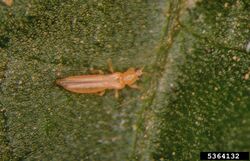 Western flower thrips (Frankliniella occidentalis) is a remarkably polyphagous species with 244 plant species from 62 families being recorded as hosts. In the USA, the pest is found outdoors attacking the flowers of apricots, peaches and nectarines, plums, roses, carnations, sweet peas, Gladiolus, peas, tomatoes, Capsicum, Cucurbits and strawberries. Other hosts in the USA include: Beta, carrots, cotton, grapefruits, grapes, onions, Phaseolus, Purshia tridentata, safflower. In Europe it is generally found only on glasshouse crops on an ever-increasing range of host plants, but most commonly on chrysanthemums, Gerbera, roses and Saintpaulia.[1]