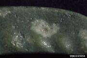 The major symptoms of F. occidentalis infestation include a discoloration of the upper leaf surface, and indentation where damage occurs. The pattern of damage is coarser than damage by Thrips tabaci. Silvering, deformity, growth malfunction and brown bumps may also be present on the foliage of ornamental plants. 'Halo spotting', another symptom of thrips damage, consists of small dark scars surrounded by whitish tissue. On some host plants, e.g. Capsicum, oviposition causes a reaction of the surrounding plant tissue.[1]